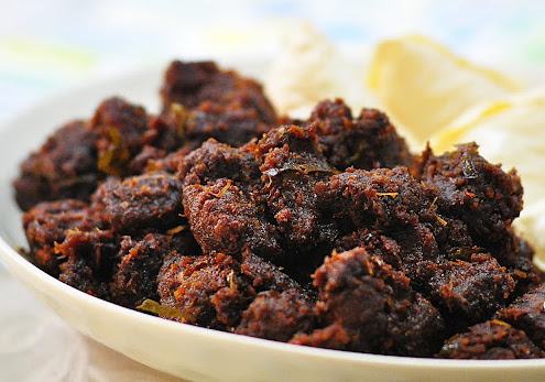 3. Setelah 30 menit masukkan daging sapi yang sudah dipotong-potong. Tambahkan garam dan masak sampai santan benar-benar mengental dan tidak ada santan lagi.